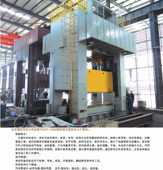 公司能夠為市場提供42大類500余個品種的標(biāo)準(zhǔn)液壓機和非標(biāo)專用、精密伺服液壓機。產(chǎn)品廣泛應(yīng)用于汽車、航天、粉末冶金、船舶、輕工、建筑、電子、家用電器等行業(yè),并代表著我國通用液壓機的發(fā)展水平。公司生產(chǎn)、設(shè)計、開發(fā)的液壓機產(chǎn)品完全能夠滿足國內(nèi)不同用戶多層次的需要。